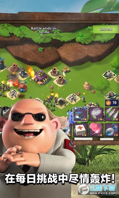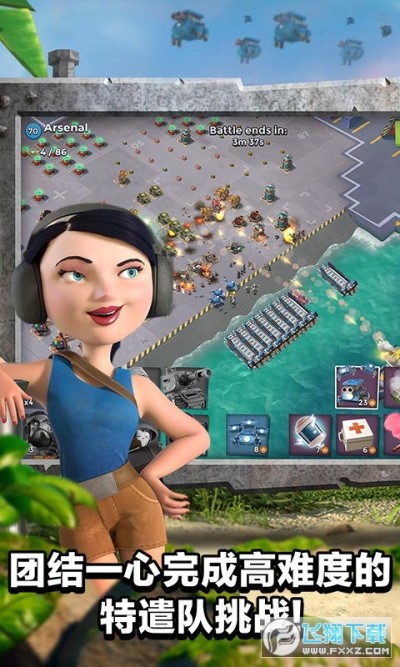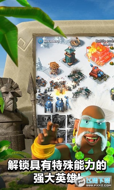 欢迎来到海岛奇兵(Boom Beach):制定作战计划,否则只能黯然败北! 在这场史诗般的战斗策略游戏中,用你的聪明才智和强健的体魄与邪恶的黑暗守卫作战。进攻敌军基地,解放受奴役的岛民,揭开这个热带天堂隐藏的秘密。与各地的玩家创建特遣队,共同展开对敌作战。侦察,计划,然后轰炸海滩!