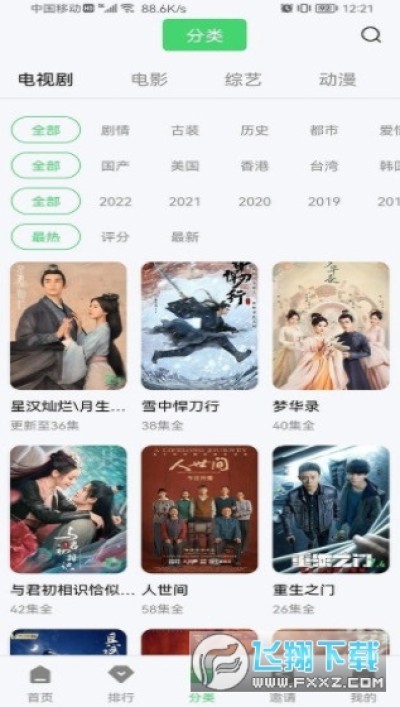 3.手机上可以查看各种热门电影电视剧,也可以查看评论和收视率。