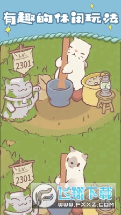 2、在可爱的风格的游戏画面下进行养成,在过程中的养成可爱猫咪,整个游戏的内容都很精彩,并且游戏超简单和有趣,整个游戏内容都很精彩和有趣。