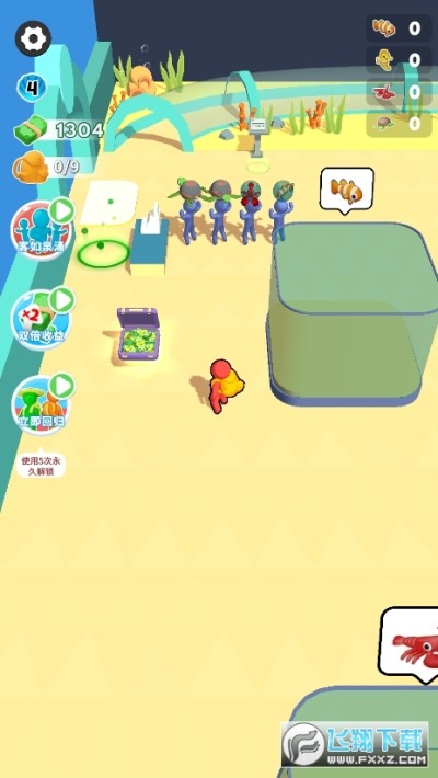 1、游戏的玩家需要控制橡胶人角色来完成冒险和管理水族馆。
