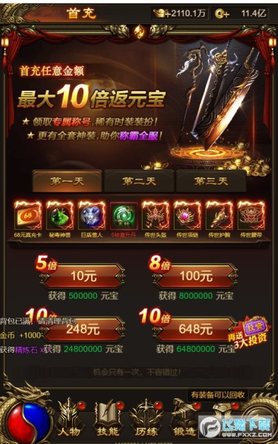 ★后缀说明:游戏内置余额宝功能,可通过日常活动,击杀boss获得直充无限提取充值额度,并计入累充活动!