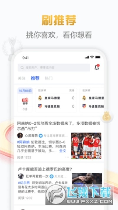最近赛事的比分一目了然,并且还可以根据用户们的喜好来为你推荐。