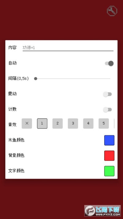 像素木鱼(Pixel WoodenFish)是一款电子木鱼精心软件。软件不仅可以任意编辑功德+多少、自动敲木鱼、计数、音效等设置,还可以自定义更改木鱼、背景、文字的颜色,更多精彩内容等你来体验,快来下载软件试试吧!
