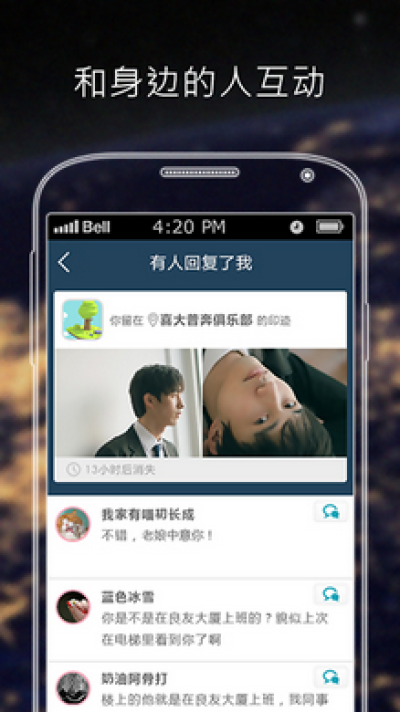 好友模式:以信息为载体,当信息穿越多个区域,用户则可以通过信息与各地的其他用户沟通交流,交上很多志同道合的新朋友。