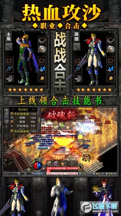 经典三职业自由组合,触发六种合击绝技!道道合击,噬魂沼泽;战战合击,破魂斩;法法合击,火龙气焰;战法合击,雷霆一击;道法合击,末日审判;战道合击,劈星斩。