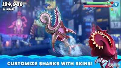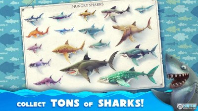 --可以收集各有7种不同大小的20类鲨鱼品种,扮演敏捷的双髻鲨,甚至到著名的大白鲨!