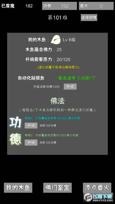 3、每次敲击你都可以释放出一种佛法去度化妖魔,不停的敲击就能变强。