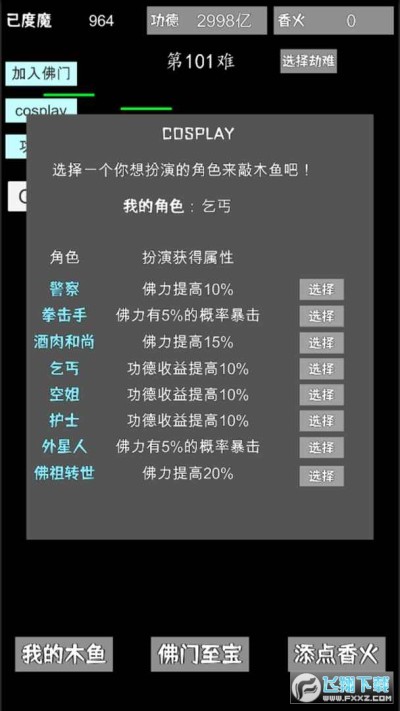 3、很多妖魔鬼怪会从各个位置出现,敲木鱼帮助他们打败敌人,获得功德。