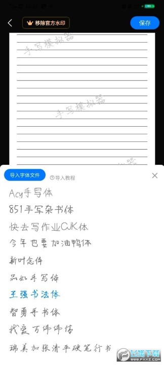 3.模拟器中内置10种手写字体,18种纸张背景,还支持自定义上传哦。