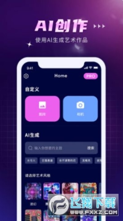 打开软件就能去进行功能的选择,你可以进行ai的生成,还能输入你喜欢的主题的。