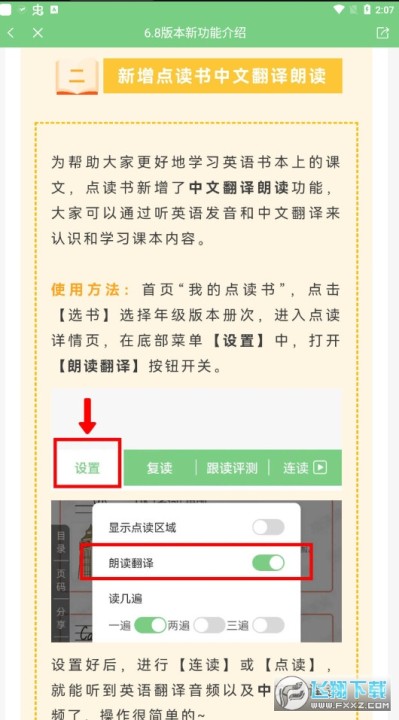 免费课本点读,同步课本点读,有复读、跟读、连读、口语评测等功能。