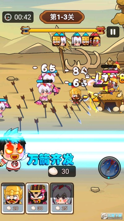 1、在游戏中,你需要通过合理安排士兵来保卫你的营地,玩家将体验三国志即时对战游戏的乐趣,萌萌哒的角色。