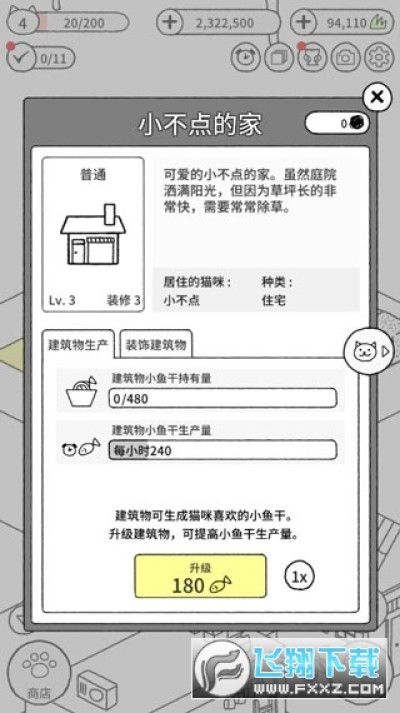 4、猫咪真的很可爱猫升级的话爱心产出变多,房子升级产出的鱼干变多。