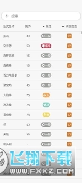 2、除了能测算出精灵们的属性,它们的每一个攻击技能的的伤害值在这里都可以看到;