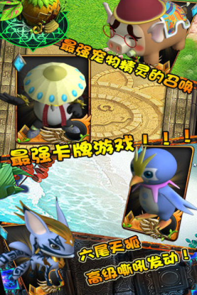 皮卡丘 十万伏特!多么熟悉的声音!现在手游版卡牌式宠物小精灵游戏正式登陆安卓平台,你可以肆意在这片大陆上驰骋,大喊,火精灵。 烈火焚原!多样的新宠物造型,多变的玩法,华丽的进化,绚丽的超必杀技,甚至传说中厉害了得的功夫熊猫也会出现在萌宠乐园中。