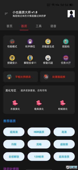 小也画质大师安卓版是一款功能全面的手机画质软件,这款画质软件的功能强大,玩家在游戏中可以体验到强大的画质助手功能,提升帧率,支持120帧帧率,有需要的快来下载吧!