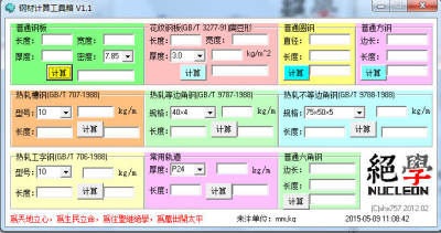 钢板重量计算器是一款支持钢材类型全面,操作简单高效,大小不足100kb的免费钢板重量计算器。钢板重量计算器能支持普通钢板、花纹钢板、普通圆钢、普通方刚、热轧不等边角刚等钢板的重量计算,通过它摆脱复杂的手工计算,大大节约了工作时间。该软件无论是专业人员或非专业人员皆可使用,操作界面十分的简单。