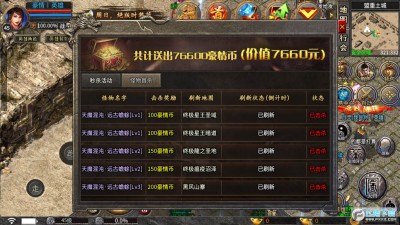 上线就送满V等特权,更有赤月套装、火龙套装等你领取;