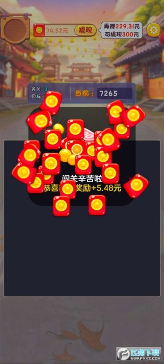 招财进红包版是一款消除闯关赚钱游戏。玩家通过点击消除同色砖块,完成目标分数即可获得红包奖励!操作非常简单,每一关都非常轻松,躺在家里就能赚零花钱,感兴趣的小伙伴们快来下载游戏试试吧!