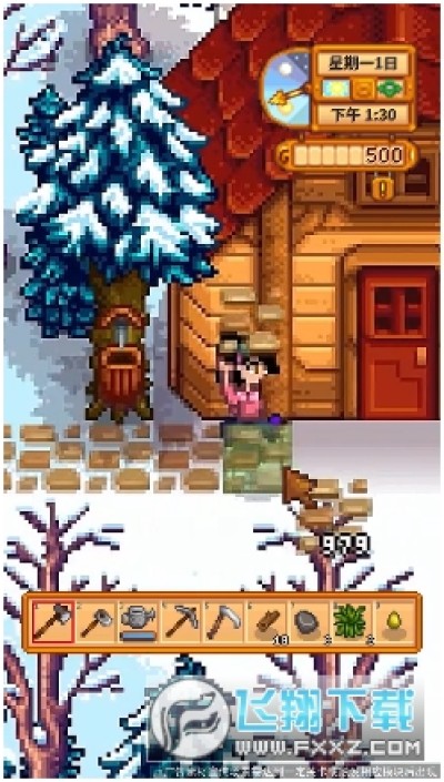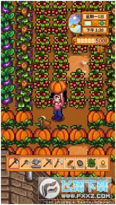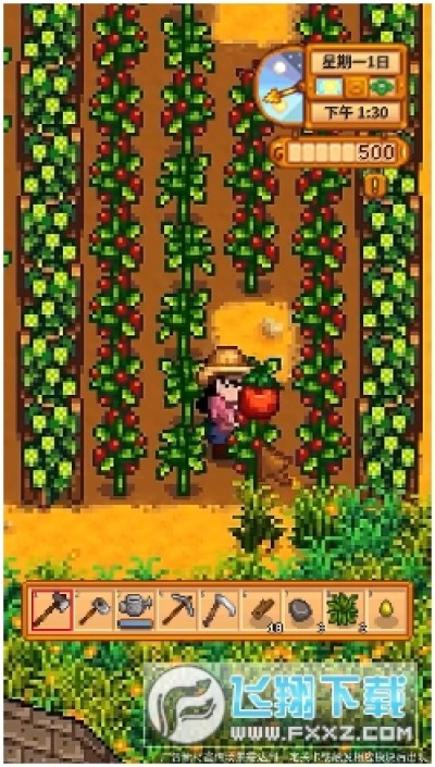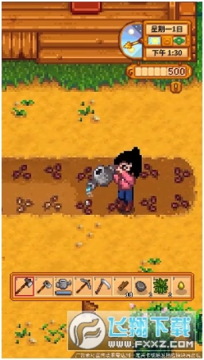 使用斧头,十字镐和镰刀除去农场中的木材、石头,割去杂草和灌木,清理出大约15个地格。