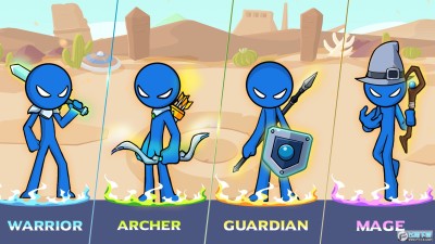 点击选择火柴人皮肤:战士、守护者、弓箭手或法师。