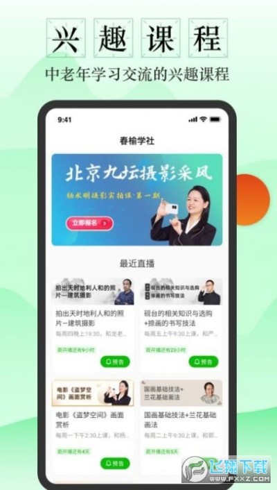 春榆学社app官方下载安卓2022最新版是一款专为中老年朋友打造的兴趣学习交流平台,提供了超多兴趣学习课程,可以参与直播课程,还可以进行圈子交流互动,有需要的朋友赶紧下载体验吧。