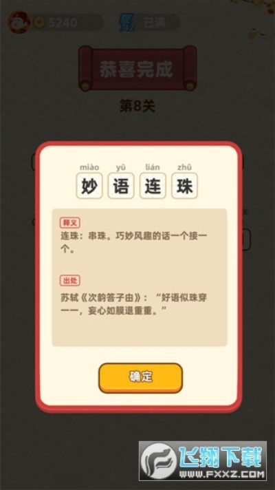 3、完成成语答题,可以获得关卡挑战的分数,解锁后续的关卡,证明自己的成语知识记忆能力。