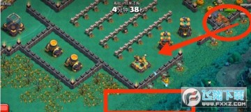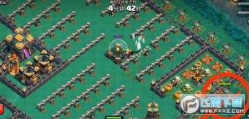 5、女王在拆炸弹塔的时候,就在下面的红色方框内下南瓜头野蛮人,10个左右就够,吸引x弩仇恨。这样可以进一步保证女王和女武神的状态良好。