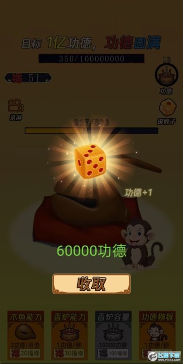 敲1亿木鱼1亿功德是一个解压敲木鱼的游戏。在这里面我们是会得到非常稳定的木鱼声,是会有更多不一样的敲击声能够去听到。我们需要去敲击满一亿次才能够得到功德。这里面的游玩目标是很直接的,我们需要去进行不断的敲击。