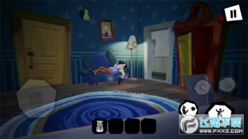 制作组曾经大肆宣扬过邻居的AI是极其先进的,如果仅以邻居的进攻性来看,所言非虚。一丁点的风吹草动都可以引起邻居的察觉,哪怕你只是躲在一个储物间里瑟瑟发抖,邻居有的时候也会找到你,简直如有顺风耳千里眼加持一般。当然,玩家也可以反过来利用这一点,利用小道具声东击西,将邻居引开,不过时间并不长。若是玩家过于依赖使用同一种方法,邻居会使出针对性的对策来埋伏玩家——比如玩家喜欢从前门突破,那么下一次前门的屋檐上可能会设置水桶陷阱;倘若你青睐从后院偷偷摸摸行动,那么可能下一次翻进去的时候等待着你的就是一个捕兽夹。总之,具有一定学习性的AI的确会迫使玩家使用不同的策略,给游戏提供了更多玩法深度。