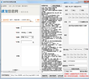 分类信息网站批量发布产品信息批量发布信息快,经过测试发布一篇信息只需6秒.