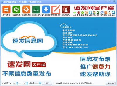 网络广告市场就像一个看不见硝烟的战场,各大公司的广告以各种方式抢占用户的界面信息。速发信息网全自动发布器是针对速发网信息发布制作的辅助工具,能自动发布信息到速发网,适合想在速发信息网批量发布信息的朋友使用,建议使用会员发布模式,免费会员一天可发20000条信息