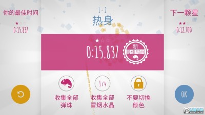 《极速变色龙》是独特的快速自行奔跑游戏,深具挑战性,且多彩画质,美轮美奂。跳起、切换和跑过专家级关卡,你一定会继续跑回来玩的。作为跑酷游戏,游戏的操作并没有做的特别复杂,得益于角色的自动奔跑设定,玩家只需要按下屏幕右侧就能让角色作出跳跃动作躲开前方的陷阱障碍。同时根据力度大小,跳跃的幅度也会有所不同。当然角色还可以进行二段跳,在一些复杂的场景中可是十分有用哦。不过游戏中的场景设有了黄和粉红两种颜色,角色需要触碰屏幕左侧来切换自身的颜色,才能顺利在这些场景中继续奔跑。另外除了这两种颜色,游戏还存在黑色的场景,这是不可进入的,若是碰到的话就得重头来过了。