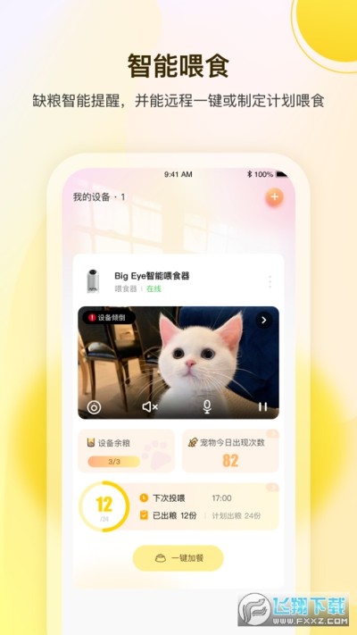 【智能喂食】远程一键为宠物投喂干粮,制定喂食计划,健康合理喂食。