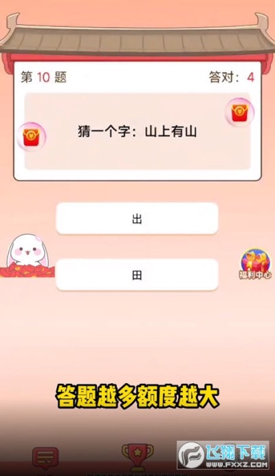 3、获得惊喜红包的加成,游戏题库丰富,奖励丰厚,来这里挑战,赢红包。