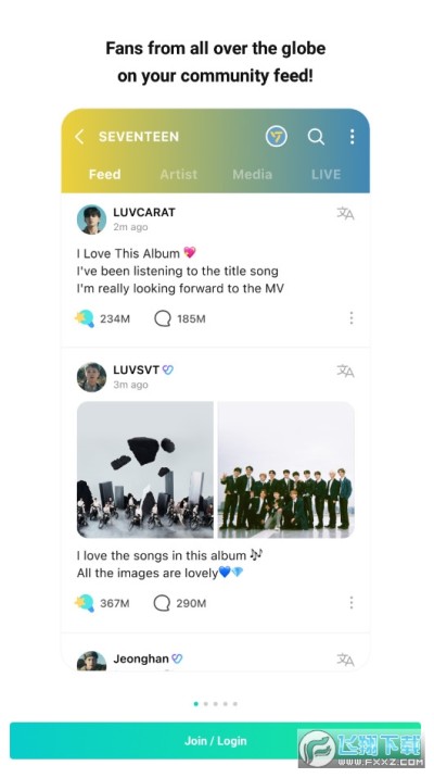 3、在软件上创立粉丝帖子,分享你最喜欢的艺术家的美丽照片。用喝彩和评论来表达你对粉丝创作的支持。