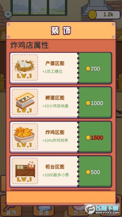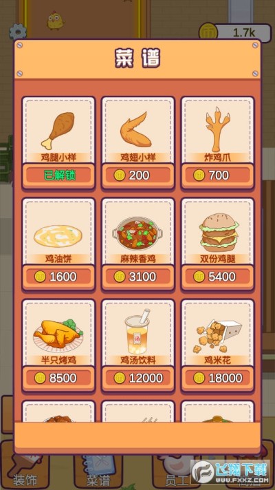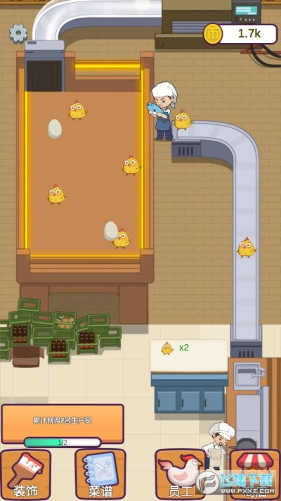 2、治愈卡通风格的画面,玩家将作为老板开始经营自己的炸鸡店。