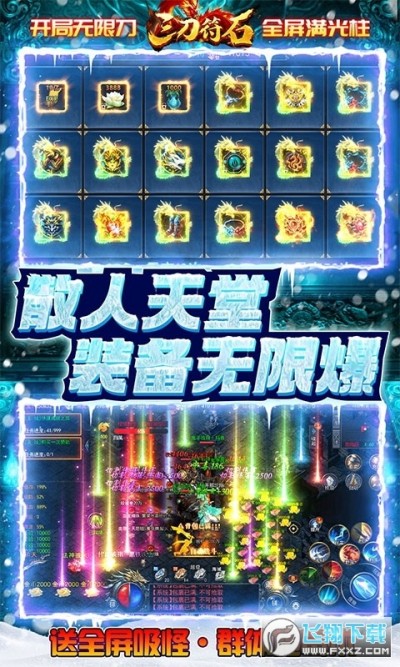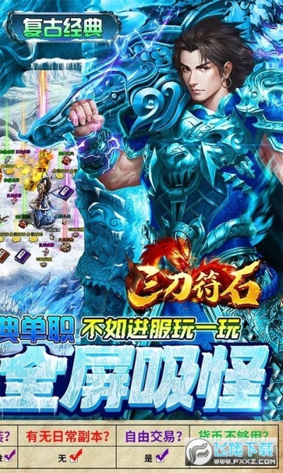 1、全新耀光冰雪复古传奇单职业版本《三刀符石》1:1复刻端游,刀刀极品装备全爆,自由交易元宝回收,无副本无日常复古传奇。