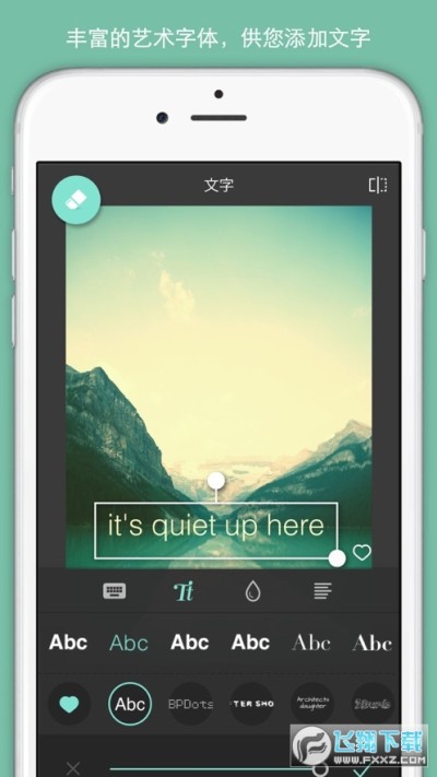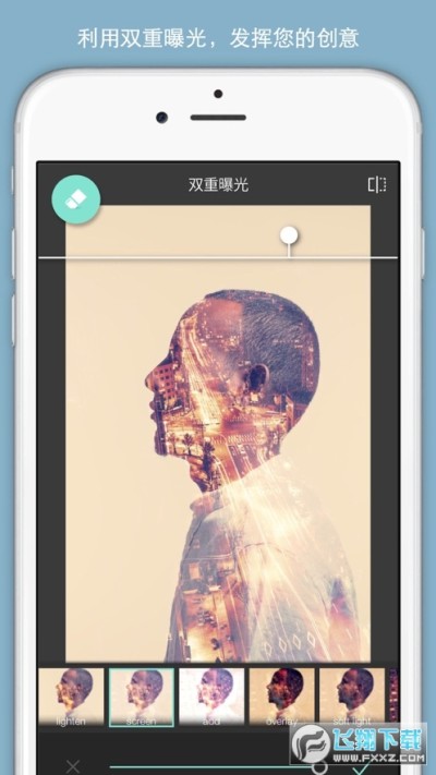 首次打开应用,选择开始界面上的“ Take photo ”或“ Choose a photo ”来拍摄或从相簿中调用一张照片。进入应用后,会看到操作界面上方的几个按钮:Undo ,Redo,Close,Share。分别对应着回到上一步,回到下一步,关闭和分享。值得一提的是在分享的时候可以选择尺寸,不过这些尺寸多是原图的有损版本,所以意义不大。分享按钮中可以对调整好的图片进行邮件发送,微博分享,保存的本地相簿,多余发送功能没有,但也基本够用!