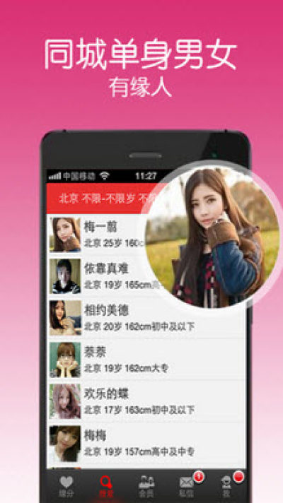 【快速搜爱】根据您的条件,迅速搜索到与你最匹配的优质异性,一键打招呼,拒绝约炮,从我们做起。