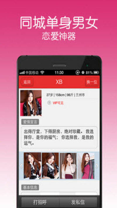 这里有最真实的用户信息、最智能的匹配流程,最直接的沟通方式,最方便的约会平台!实名认证,人工审核,致力于打造最安全,真实的婚恋交友平台