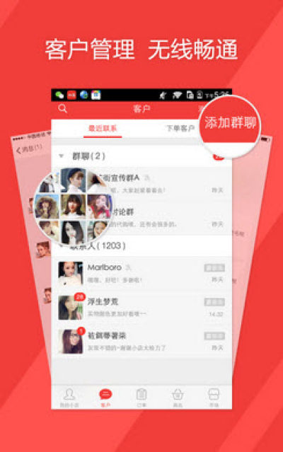 小店IM沟通工具让你和客户的沟通更流畅、有趣。客户管理模块帮你高效地管理客户。