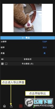4、点击左下角的“导出”图标进入导出界面。点击“三角形”图标开始导出,等待完成即可。