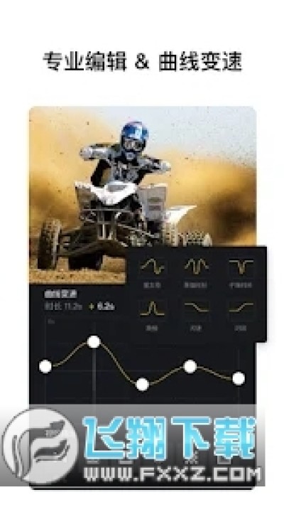 • 曲线变速:除了常规的变速外,VN 还支持曲线变速,轻松帮你实现视频快慢交替变化的特效,堪比 Premiere 时间重映射功能。此外 VN 提供 6 种预置曲线供大家参考。