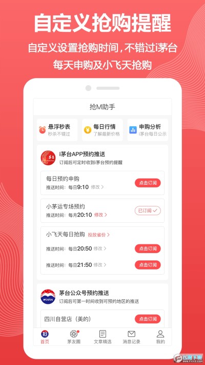 2、自定义申购i茅台时间,到点自动提醒预约;