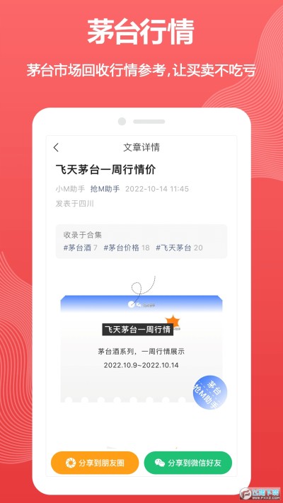 抢M助手app是一款功能强大的抢购茅台软件,现在的茅台真的是很受欢迎,主要是价格,如果抢到就是赚到,而且马上过年送礼也是倍有面子,有需要的朋友赶紧下载抢购吧。