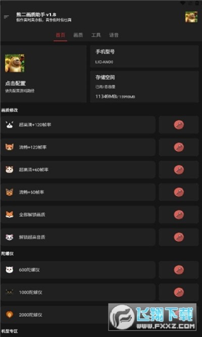 1.一键修改画质帧数,在游戏中获得更清晰流畅的游戏体验。