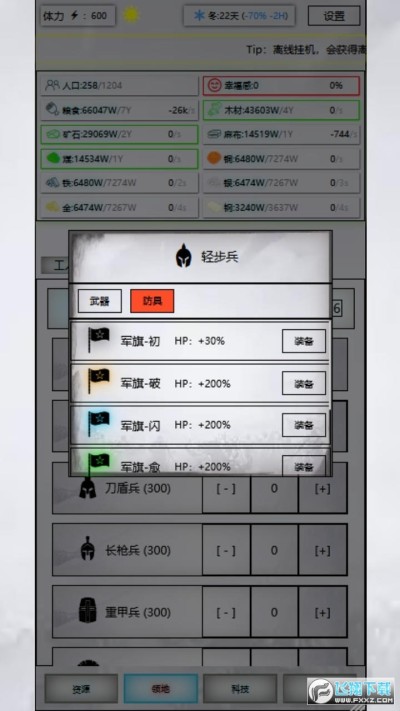 1.在放置的休闲时代,既可以发展经济,也可以打造自己的军团力量。