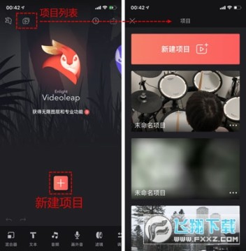 Videoleap的界面和大部分的图片编辑软件都是类似的,我们可以直接在主页上新建项目,或者点击左上的项目列表,编辑已经创建的项目。