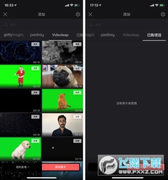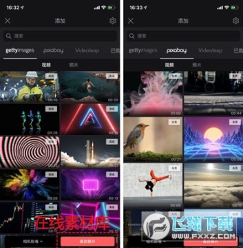 你也可以选择Videoleap内置的在线素材库的素材,提供了视频和照片,其中gettyimages的素材需要高级版才能使用,而pixabay的素材免费。